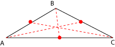 Como su nombre lo indica, son las bisectrices de los tres ángulos interiores. Las tres bisectrices se cortan en un punto, llamado el incentro del triángulo. |