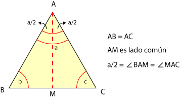 Dos triángulos son congruentes si tienen dos ángulos y el lado común a ellos, respectivamente congruentes. Por ejemplo, en la figura de la izquierda.