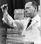 El científico Jonas Salk hace pública la obtención de una vacuna efectiva contra la poliomielitis, su logro no estará exento de polémicas