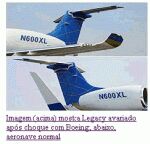El Legacy ha perdido un estabilizador horizontal en el extremo de una de sus alas probablemente como consecuencia del impacto, el daño sugiere la posibilidad que tras un fantasmagórico e imprevisto roce a gran altura con el vuelo de Gol el estabilizador haya ingresado con el impacto en una de las turbinas del Boeing 737 hciendola estallar y provocando la destrucción de la nave. En cualquier caso el Legacy ha escapado casi indemne del desastre por un milagro que reconoce muy pocos o ningún antecedente en el historial mundial de colisiones aéreas en donde por lo general suelen resultar destruidas todas las maquinas involucradas.