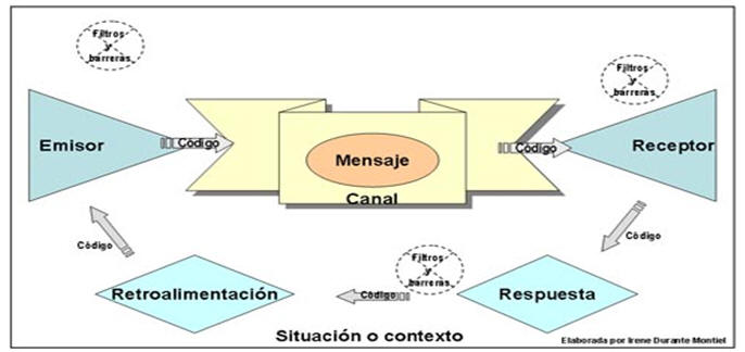 I.Teoría de la comunicación. Escribe la palabra correcta en los recuadros y flechas a continuación para indicar los elementos de la comunicación. (6 puntos)