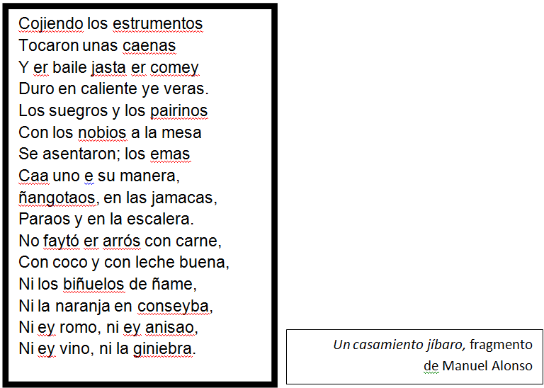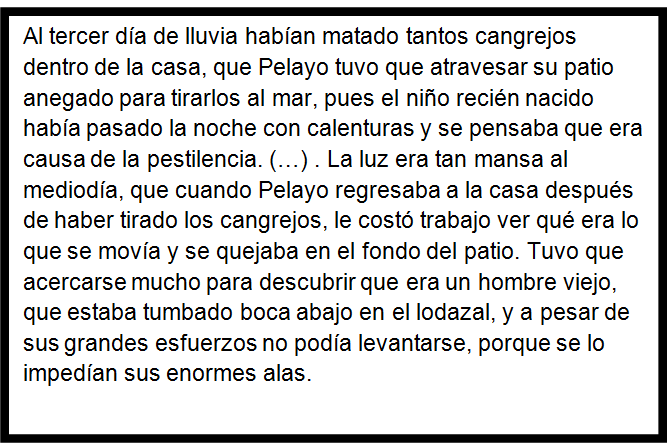 1. Cantar de Mío Cid, anónimo, fragmento 2. Canción del pirata, José de Espronceda 3. Un casamiento jíbaro, Manuel Alonso 4. La carta, José Luis González 5. “Un señor muy viejo con alas enormes”, Gabriel García Márquez