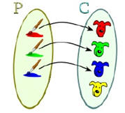Una función consiste en dos conjuntos, dominio y rango y la regla  que asigna   a cada miembro  del dominio exactamente un miembro del rango.  A cada miembro del rango debe  serle  asignado  por lo menos un miembro del dominio. Si la relación entre dos variables x y y es una en la que para cada valor de y hay exactamente un valor de x, se dice que y es una función de x.