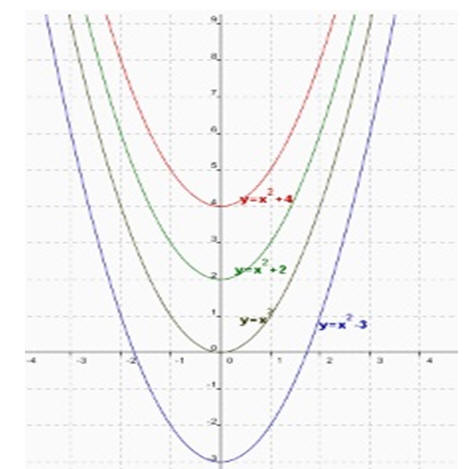 La gráfica de y= x^2+ 3 .   Es la gráfica de y=x^2 que se ha movido tres unidades verticalmente. Esto se conoce como desplazamiento vertical