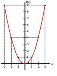 donde x es número real cualesquiera y distinto de cero. Si representamos "todos" los puntos  (x,f(x)) de una función cuadrática,  obtenemos siempre una curva llamada  parábola.