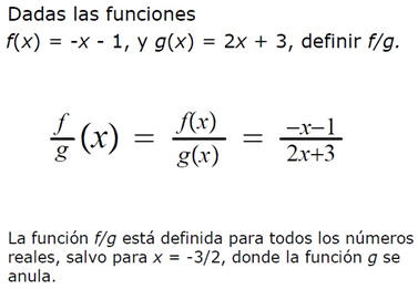 División de funciones-  Si f(x) y g(x) son dos funciones, entonces la función cociente esta dada por