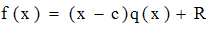 Teorema del ResiduoSi una función polinómica f(x) se divide por un binomio de la forma x –c, el resido será f(c). Demostración: Usando el Teorema de División, con g(x) = (x - c), tenemos: