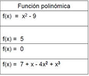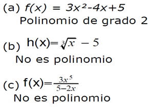 Ejemplo: Determine cuáles de los siguientes son polinomios. En aquellos que lo sean, diga su grado.