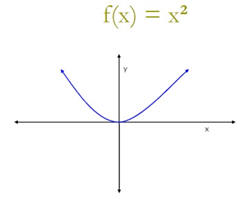 Observa que esta gráfica tiene su vértice en el origen y abre hacia arriba. El dominio de f(x) es el conjunto de todos los números reales y el recorrido es el conjunto de los números reales no negativos. La función es par y tiene simetría al eje de y.