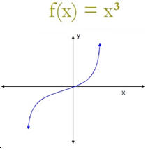 Como puedes observar en esta gráfica, tanto el dominio como el recorrido de la función f(x) = x³ es el conjunto de los números reales. La gráfica pasa por el origen y es simétrica al origen.