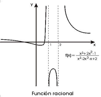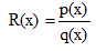 Donde p y q son funciones polinomiales y q es diferente de 0. Su dominio son los números reales para los cuales q es distinto de 0. Para dos polinomios cualquiera, A y B, su fracción es conocida cono una función racional.