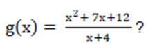 = x + 4 y la función racional A. g(x) no tiene intercepto con el eje de y. B. f(x) no tiene un límite máximo. C. f(x) es una recta y g(x) es una curva. D. g(x) no está definida en un punto.