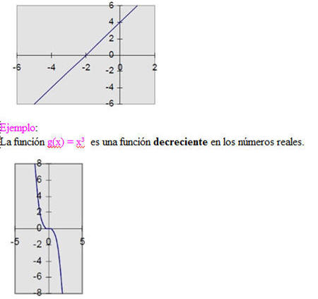 Ejemplo: La función f(x) = 2x + 4 es una función creciente en los números reales.