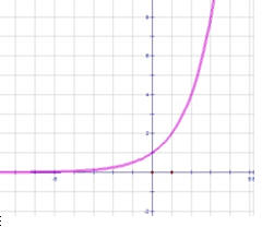 Dominio: Los Reales Rango: (0, ) No tiene intercepto en x Intercepto en y: (0,1) Asíntota horizontal: y = 0 cuando x es infinito Es creciente Es uno-uno