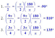 Ejemplos: Convierta las siguientes medidas de radianes a grados.