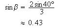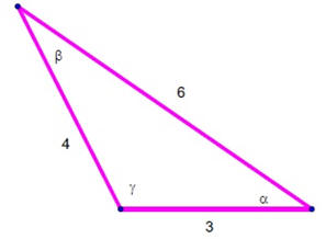 Resuelva el triángulo que tiene las condiciones que se indican abajo. En este caso, los ángulos A,B,C están representados por las letras griegas a, b, g respectivamente. En ambos casos su significado es el mismo en términos de que representan la medida de los ángulos correspondientes al vértice donde se encuentren.
