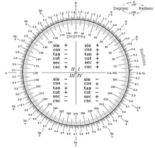 El dominio de las funciones seno y coseno es el conjunto de los números reales. para investigar su campo de valores debemos referirnos al círculo unitario. Las funciones seno y coseno se dice que son periódicas. Esto quiere decir que si añadimos una revolución adicional a un ángulo cualquiera en el círculo unitario, regresaremos exactamente al mismo lugar donde se encontraba el lado terminal del ángulo antes de completar la revolución adicional. Los ángulos resultantes serán coterminales. Esto quiere decir que sus lados terminales coincidirán unos con otros.