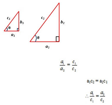 Dos triángulos que tengan un ángulo agudo congruente son semejantes por definición. Por lo tanto sus lados correspondientes son proporcionales entre sí.