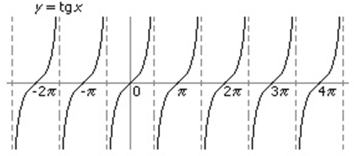 Recorrido: IR 2. La función tangente es una función periódica, y su período es π. 3. La función y=tan x es una función impar, ya que tan(-x)=-tan x. 4. La gráfica de y=tan x intercepta al eje X en los puntos cuyas abscisas son: x =n π, para todo número entero n.