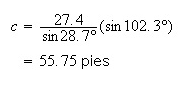 Ejemplo 1. Caso (AAS) Para el triángulo en la figura que sigue, se tienen las siguientes medidas: C=102.3 , B=28.7 , b=27.4 pies. Halle las medidas de los restantes lados y ángulos.