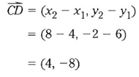 Se llama componentes de un vector, al punto que tiene como abscisas la diferencia de las abscisas y como ordenada la diferencia de las ordenadas de los puntos que conforman el extremo y el origen, en ese orden.