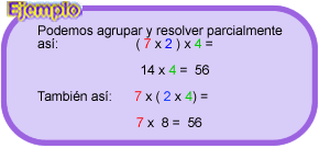 no se verá alterado. Para el siguiente ejemplo: 7 x 2 x 4 = |