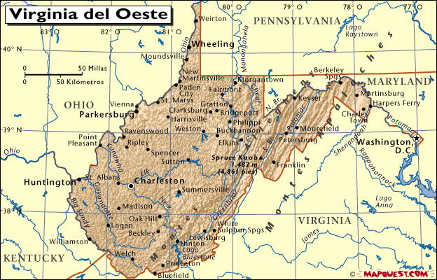 Charleston (53.421), Huntington (51.475), Parkersburg (33.099), Wheeling (31.419), Morgantown (26.809)