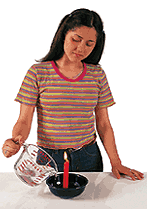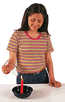 cierta cantidad de agua en el recipiente y enciende la vela. |
