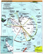 Mostrando los distintos sectores bajo reclamo de diferentes países y la ubicación de sus respectivas bases, incluyendo en detalle su localización