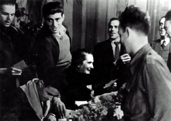 Ya durante la guerra ascendió al segundo lugar en influencia dentro del partido, después de su secretario general, José Díaz. Tras la derrota militar se exilió en la Unión Soviética (1939-77), continuando su labor como representante de España en la Internacional Comunista. Al morir Díaz en 1942, Pasionaria le sustituyó como secretaria general del PCE, cargo del que sería desplazada por Santiago Carrillo en 1960; se mantuvo, no obstante, en el cargo honorífico de presidenta del Partido. Dolores Ibárruri regresó a España tras la muerte de Franco y la transición a la democracia, resultando elegida de nuevo diputada por Asturias (1977). Incluso entonces permaneció aferrada a los viejos ideales del comunismo prosoviético, que apenas tenían ya eco ni en la sociedad española ni en el PCE; aquejada por problemas de salud, abandonó pronto su escaño y se retiró de la política activa. |