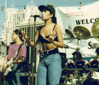 Vestida con tops que recordaban el estilo atrevido de Madonna en aquella época y con canciones típicamente tejanas pero adaptadas al público de cada zona, el éxito de Selena creció sin parar. En 1993 consiguió un Grammy al mejor álbum de música mexicano-americana por Live y al año siguiente publicó su disco Amor prohibido, donde se escuchaban canciones que se hicieron famosas al instante de aparecer: Bidi Bidi Bom Bom y No me queda más, entre otras. El sueño de Selena se hace realidad: triunfa en el mundo típicamente machista de la canción tejana y consigue entrar en México como una verdadera número 1, algo prácticamente imposible para cualquier cantante de Tejas. En el año 1995 disfruta de su éxito al grabar Dreaming of you, un disco del que vende más de dos millones de copias y protagoniza un multitudinario concierto en la ciudad de Houston. Son los últimos trabajos de una carrera donde se incluyen hits internacionales como I Could Fall in Love o el mismo Amor Prohibido, cuyo sencillo del mismo nombre llegó al número 1 de las listas. El éxito de Selena se vio roto el día 31 de marzo de 1995, cuando tenía tan sólo 23 años. La presidenta de su club de fans, Yolanda Saldívar, la asesinó por motivos económicos. Ambas vivían en Corpus Christi y se conocían desde hacía tiempo. Selena confió en ella para dirigir algunas de sus tiendas, pero su padre se dio cuenta de que la estafaba. Después de una serie de problemas y desacuerdos, la cantante fue a visitarla ese día para hablar cara a cara y recibió un disparo por la espalda. El 3 de abril se celebraban unos multitudinarios funerales en su memoria que atrajeron a público de diversas ciudades. Había nacido un mito cuya vida fue llevada a la pantalla por la actriz Jennifer López. Después de la muerte de Selena se publicaron diversas recopilaciones de sus trabajos que incluían temas en inglés (Siempre Selena y All my hits) y la venta de sus discos creció espectacularmente. Su repercusión fue tal que la revista People Texas le dedicó su portada una semana después de morir e incluso un número conmemorativo. Numerosas figuras musicales de carácter internacional, como por ejemplo Talía, Gloria Estefan y Carlos Vives han participado en homenajes póstumos a su memoria. |