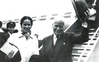 Ya en 1919 Chaplin, Pickford y Fairbanks, junto al director David W. Griffith (sin duda otro genio del cine) habían constituido la productora independiente United Artists, pero Chaplin no trabajó para ésta hasta no acabar su contrato con la First National. En 1923, con productora propia, sólida fortuna personal y una suntuosa mansión en Beverly Hills, se sintió al fin con las manos libres para desarrollar sin ataduras su creatividad. Ese año dirigió, sin actuar, la excelente A Woman of Paris, con su admirada Edna y Adolphe Menjou. El multifacético creador tenía ya treinta y cinco años, y el 24 de noviembre de 1924 contrajo matrimonio en México con la jovencísima actriz Lolita McMurray (o Lita Grey), de sólo dieciséis años. La unión duró hasta 1927 y Chaplin obtuvo de ella sus dos primeros hijos (Charles Spencer y Sydney Earle) y pagó un millón de dólares al divorciarse de su Lolita. En esa época inició la gran trilogía final del personaje de Charlot, rodando en 1925 The Gold Rush (La quimera del oro), de la que en 1942 realizó una versión sonora narrada por su voz y con música propia. Ya en 1927 se estrenó la primera película sonora, El cantor de jazz, con Al Jolson, pero Chaplin seguía fiel al cine mudo cuando en 1928 realizó The circus (El circo), película que él mismo consideraba menos lograda que las que integraban la trilogía, pese a ser un magnífico filme cómico. Por esta película recibió su primer Oscar de la Academia en 1929. Dos años más tarde estrenó City Lights (Luces de la ciudad), paradigma de la ternura y la desolación de su alter ego cinematográfico, con inclusión de escenas sonoras y música de Chaplin. En 1932 realizó un nuevo y extenso viaje a Europa, donde en una recepción conoció a la actriz francesa Paulette Goddard. Ambos prosiguieron juntos el itinerario de lo que llegó a ser una gira mundial, y al año siguiente Paulette sería su pareja en el último film de la trilogía: Modern Times (Tiempos modernos), una ácida parábola sobre el maquinismo industrial y las miserias del capitalismo. Al desatarse la guerra y la invasión alemana sobre Europa, Chaplin filmó, en 1940, The Great Dictator (El gran dictador), una divertida y feroz parodia del nazi-fascismo, en la que el actor se desdoblaba en un Charlot transformado en peluquero judío y un Hitler mitómano y paranoico que anunciaba la disposición de Chaplin a encarnar nuevos roles, sin bombín ni zapatones. Lo acompañaba la Goddard, cuyo personaje llevaba el nombre de la madre de Charles (Hannah), fallecida en 1928. Chaplin y Paulette se distanciaron en 1941 y poco después el cineasta se vio envuelto en un proceso por la paternidad de la hija de la actriz Joan Barry, llamada Carol Ann. Condenado en abril de 1942 por violación de la Ley Mann, debió hacerse cargo de la manutención de la niña. El escándalo no le impidió casarse a sus cincuenta y cuatro años, con la hija del insigne dramaturgo Eugene O'Neill, una hermosa joven de dieciocho años llamada Oona, que permanecería a su lado el resto de su vida. El patriarca de Vevey Tras rodar Monsieur Verdoux en 1947, Charles Chaplin cayó bajo la ola del maccarthismo que tenía como blanco a intelectuales y artistas de Hollywood. La crítica social que rezumaba su obra, sumada probablemente a su origen judío y al hecho de ser extranjero (nunca se nacionalizó), lo llevaron a comparecer en 1949 ante el inquisicional Comité de Actividades Antinorteamericanas. Al año siguiente, mientras él y su familia viajaban por Europa, se ordenó a las autoridades de inmigración que lo retuvieran a su regreso. Chaplin decidió no volver jamás y se instaló en una lujosa residencia en Corsier-sur-Vevey, en la plácida ribera del lago suizo de Léman, frente a Ginebra. Oona se encargó de liquidar sus asuntos económicos y profesionales en Estados Unidos. Inglaterra ofreció a su hijo pródigo un sitio para continuar su trabajo. En 1952 rodó en Londres Limelight (Candilejas), magnífica y sentimental rememoración de sus días de cómico ambulante, y dos años más tarde recibió el Premio Internacional de la Paz. Su resentimiento contra Estados Unidos se reflejó en A King in New York (Un rey en Nueva York), filme de 1957 cuyos altibajos no ocultan el corrosivo humor chapliniano. El gran cineasta era ya un anciano patriarcal y vitalista que comenzaba a escribir sus memorias en 1959. A los setenta y ocho años fue padre de su octavo hijo con Oona, Christopher, nacido en 1962, y en 1964 se publicó en Londres su autobiografía, Historia de mi vida.