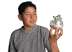 Lentamente le aparecerán tallo, raíces y hojas a cada una de