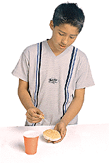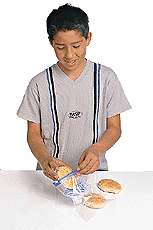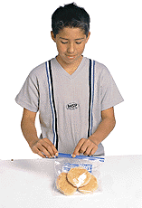 la ayuda de un cuentagotas, moja un pan con agua. Solo