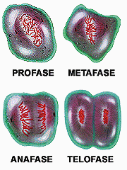 Al producirse la reproducción, el individuo resultante, sin importar el reino al cual pertenezca, recibe el material hereditario del o los progenitores contenido en los cromosomas. En las fases de la mitosis de la página siguiente vemos cómo los cromosomas se van dividiendo al formar las dos nuevas células. Francis Crick y James Watson, en su trabajo publicado en 1953, sugirieron que la molécula de ácido desoxirribonucleico (DNA), que es la que contiene el material hereditario de los cromosomas, consistía en una doble hélice formada por eslabones del azúcar fosfatado, marcando un nuevo avance en el estudio de la genética. Estos científicos, junto con Maurice Wilkins, recibieron el premio Nobel de medicina y fisiología en 1962.
