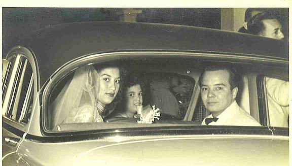 Mi madre Emilda "Emmy" Meléndez Rosado y mi padre Juan David García Santiago a la salida de su boda 1954,