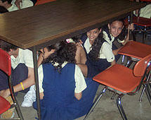 protejan de objetos que puedan desprenderse como bajo una mesa, bajo