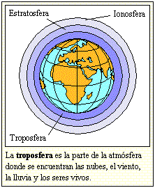 1) TROPOSFERA: es en la que se desarrolla la vida, llega a una