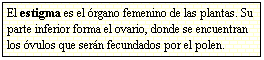 El estigma permite la entrada del polen; el estilo, el avance de