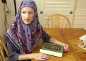 (libro sagrado del Islam) y mirando hacia la ciudad