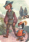 El gato se puso inmediatamente las botas, colgóse el saco al cuello, asiendo los cordones con sus patas de delante, y se fue a un soto donde había gran número de conejos.