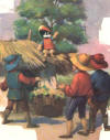 No tardó en encontrar unos labriegos que segaban la yerba de un prado y les dijo: