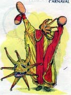 Vejigante: -Vejigante a la bolla.... Niño: -Pan y cebolla