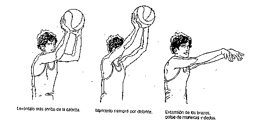 El pase de BéisbolEste pase es el más utilizado en los contraataques puesto que es el que mayor distancia puede coger, pero tiene el inconveniente que también es muy impreciso. Bueno primero nos colocaremos el balón a la altura del hombro y lo impulsaremos con un movimiento del brazo en línea recta, y no en circulo puesto que el movimiento circular hace que el tiro aún más impreciso y difícil de coger. Como este pase tiene que recorrer casi toda la cancha se tendrá que lanzar un poco bombeado, pero no demasiado puesto que con más altura más tarda en llegar al destino. En mi opinión en lugar de realizar este pase sería mejor pasar como un pase de pecho, pero para ello primero tendremos que tener una buena potencia de pase. Pase a una manoEl pase a una mano es uno de los más rápidos de efectuar pero tiene el inconveniente de ser también un pase algo impreciso y débil si no lo practicamos con frecuencia. Para realizar este pase primero hay que tener un buen manejo de pelota puesto que el pase se realiza sin interrupción después de un bote. cuando el balón suba, después del bote, hasta la altura del pecho y a continuación extendemos el brazo y le damos fuerza con un movimiento de muñeca igual que en el pase de pecho. Pase con una mano picadoSe realiza del mismo modo que el anterior pero con la salvedad de que primero tiene que botar en el suelo. Pase por la espaldaSi quieres hacer un pase que sorprenda al contrario y que el baloncesto sea un juego aun más espectacular, tienes que practicar mucho este pase. Para poder ejecutarlo a la perfección primero tienes controlar perfectamente el cambio de mano por la espalda, explicado en la página de driblings, y después practicar, con el mismo movimiento, lanzarle el balón a un compañero en lugar de pasártelo a la otra mano. Te aconsejo que para que el balón salga con más fuerza gires un poco la cadera mientras realizas el pase. El dribling (dribleo)Para realizar un dribleo tenemos que poseer un buen control del balón y también hay que saber utilizar tu inteligencia y picardía, puesto que por muy bien que sepas hacer el dribleo si no sabes cuando utilizarlo este es de muy poca eficacia. Bueno primero vamos a indicar los distintos cambios de manos que vamos a explicar: el cambio de mano de rodilla a rodilla, por entre las piernas, por detrás de la espalda y de reverso. Rodilla a rodillaEste es el cambio de mano más básico y del que parte el cambio entre las piernas. Recomiendo que se posea un control absoluto de este por ser también uno de los más efectivos y rápidos. Primero nos colocaremos con la pierna contraria a la que realizamos el bote un poco adelantada, es decir, la posición básica de bote. A continuación la pondremos en línea con la otra y con una abertura igual a la de tus hombros entonces con un movimiento rápido y seco de la muñeca daremos un bote para que el balón llegue a la otra mano que estará esperándola. Entonces podemos hacer una salida directa, con la misma pierna que el lado al que nos dirigimos, o también una salida indirecta, con la pierna contraria del lado al que vamos. a continuación realizaremos un cambio de ritmo (aumentaremos la velocidad) a la vez que damos el bote lo más lejos que podamos controlar. Entre las piernasEste cambio se realiza igual que el anterior pero el cambio de mano se realiza dando el bote entre las piernas, es decir, partiendo de la posición del cambio de mano de rodilla a rodilla primero hacemos el cambio de mano pasando el balón entre las piernas y luego igualamos los pies para después arrancar con más velocidad y fuerza Por la espaldaEste cambio de mano es muy bueno si tienes un absoluto control sobre el, de lo contrario es una forma muy efectiva de perder el balón. Para realizarlo primero tendremos que hacer un pequeño bote hacia atrás quedándose la pelota detrás de nuestra espalda, después lo impulsaremos hacia el otro lado y hacia delante mediante un movimiento rápido, haciendo que la pelota pase al otro lado y se nos quede delante y podamos realizar el cambio de ritmo necesario. Para hacer este cambio de mano correctamente se necesitan bastantes horas de entrenamiento por que es fácil que se te vaya el balón cuando lo pases por detrás de la espalda o que te pegue en ésta De reversoEste cambio de mano es muy útil en las zonas cercanas al aro pues te permite dejar al contrario en tu espalda y poder realizar un tiro cómodo. Para realizar este cambio de mano utilizaremos el pie contrario al que botamos el balón como pie de pivote o giro. este pie tiene que estar colocado delante del defensor y entonces desplazamos el otro detrás de la pierna de este, mediante un giro del cuerpo provocando que no pueda alcanzarnos, para efectuar un giro efectivo tendremos que bajar nuestro centro de gravedad, flexionaremos más las piernas, mientras que giramos tenemos que efectuar un bote que recogeremos con la otra mano, Después realizamos un cambio de ritmo. Los "fakes" o amagosEn este apartado lo que más vale es el saber actuar, puesto que tienes que engañar al defensor. Hay amague de todo: amague de tiro, de salida, de pase,...., La forma ideal de realizar una finta es realizar el movimiento de tiro, de pase,... a medias. El amague de tiroTenemos que colocar el brazo en la misma posición que está explicada en el apartado de tiro y colocarnos sobre las puntas de los pies, como si empezáramos el salto, y a continuación botaríamos, si no hemos agotado el bote, o tiraríamos, para aprovechar que el defensor se a desequilibrado para taponar el primer tiro. Para el paseSe realiza el mismo movimiento que el explicado anteriormente pero la pelota no se pasa sino que con un movimiento rápido, no por ello precipitado o mal ejecutado, lanzamos el balón a otro compañero o al mismo, si se puede. El amague de salidaEs una de los amagos más útiles si se consigue engañar a los defensores puesto que el defensor se separa de la trayectoria que 