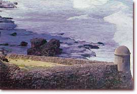 GARITA DEL DIABLO - Con un grito de" Alerta" el centinela comenzaba la jornada militar, Esto se efectuaba frecuentemente para no dormirse y atestiguar su vigilancia. Misteriosamente, durante una noche oscura, desapareció un centinela de esta garita, surgiendo así la leyenda de la "Garita del Diablo". Los habitantes de la isla de Puerto Rico, eran muy propensos a los ataques de piratas. Por tal razón tenían que pasarse la vida vigilando. La ciudad capital estaba rodeada (aún está) por castillos y murallas . Alrededor de las murallas habían, entre trecho y trecho, unas garitas o torresitas donde los soldados hacían su guardia día y noche. Por las noches se sentías las rondas de gritos que los centinelas gritaban para no dormirse. - ¡Centinela alerta! - le gritaba uno Entre todas las garitas, había una, la más distante y solitaria. Estaba sobre un acantilado profundo en el extremo de la bahía. En el silencio de la noche, el ruido del mar producía un rumor como si los malos espíritus estuvieran cuchicheando. Había un soldado al cual llamaban "Flor de Azahar". El azahar era una flor muy blanca y como el soldado Sánchez tenía la piel blanca como el azahar, le llamaban así. Esa noche le tocó a Sánchez velar en esa garita. Como de costumbre, los gritos de contraseña de los soldados se escuchaban de trecho en trecho. Pero, al llegar al de el soldado Sánchez, nadie contestaba. Solo se escuchaba el viento silbar y el mar con su rumor. El miedo se apodera de sus compañeros que pasaron la noche temblando, del solo pensar, que le hubiese pasado a su compañero. Al salir el sol, todos salieron corriendo hacia la garita a ver que había pasado en la garita, que se había quedado muda durante la noche. Encontraron: el fusil, la cartuchera y el uniforme del soldado Sánchez. El soldado Sánchez, había desaparecido sin dejar rastros. Los soldados, que eran supersticiosos, comenzaron a decir que un demonio lo había sorprendido y se lo había llevado por los aires. Desde ese día, a la garita del desaparecido Sánchez, se le conoce como "La Garita del Diablo". Eso fue lo que creyeron los soldados y el resto de la isla. Pero la verdad.....esa se las contaré yo, ¿quieren saberla?. Pues aquí les va: Sánchez (Flor de Azahar) era un soldado andaluz y muy guapo, que pertenecía al Regimiento de Caballería y tocaba una guitarra muy bella. Diana, una mestiza, muy hermosa, vivía profundamente enamorada de Sánchez. Y Sánchez de ella. Se conformaban con mirarse y hablarse con los ojos. A Sánchez su ordenanza le prohibía acercarse a ella, y a ella, se lo prohibía su madre de crianza que era más estricta que un sargento. Flor de Azahar (Sánchez) se comunicaba con ella, a través de su guitarra. En las noches la tocaba y cantaba. En el canto le comunicaba a Diana sus mensajes. Una noche le envió un mensaje, el cual solo ella podía comprender, que decía: "Mañana cuando anochezca, vete a buscar a tu amor, porque lejos de tus brazos, se le muere el corazón." La noche siguiente, Diana se levantó muy calladita y sigilosamente, salió de la casa para buscar a su amor. Cuando se encontraron, en la garita, se fundieron en besos y palabras de amor y decidieron huir lejos y vivir juntos para siempre. Diana le había llevado un traje civil. El dejó en la garita el fusil, la cartuchera y el uniforme y sin hacer el menor ruido huyeron hacia la sierra y los bosques de Luquillo. Allí, a escondidas del resto de la isla, construyeron su hogar y vivieron el resto de sus días. Dicen que aún, en la garita, en las noches se escucha el rasgueo de la guitarra y una risa disuelta en el viento. Queriendo ésto decir que Diana y Flor de Azahar se burlan de los que inventaron la leyenda de la Garita del Diablo.
