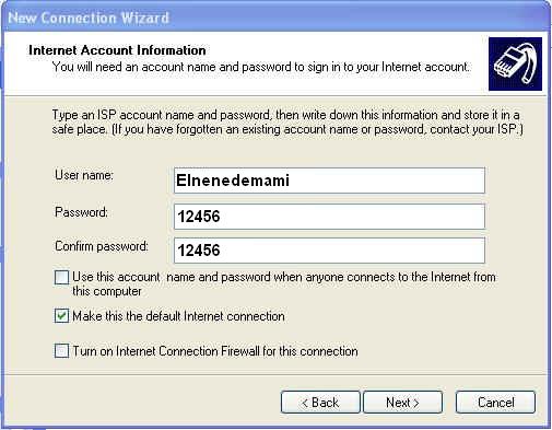usted escoge su User name y Password, luego presione next. Marque la segunda
