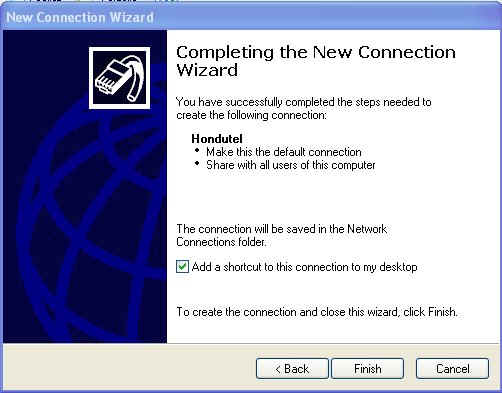 opción. Haga por default esta conexión, presione next. De esa forma no