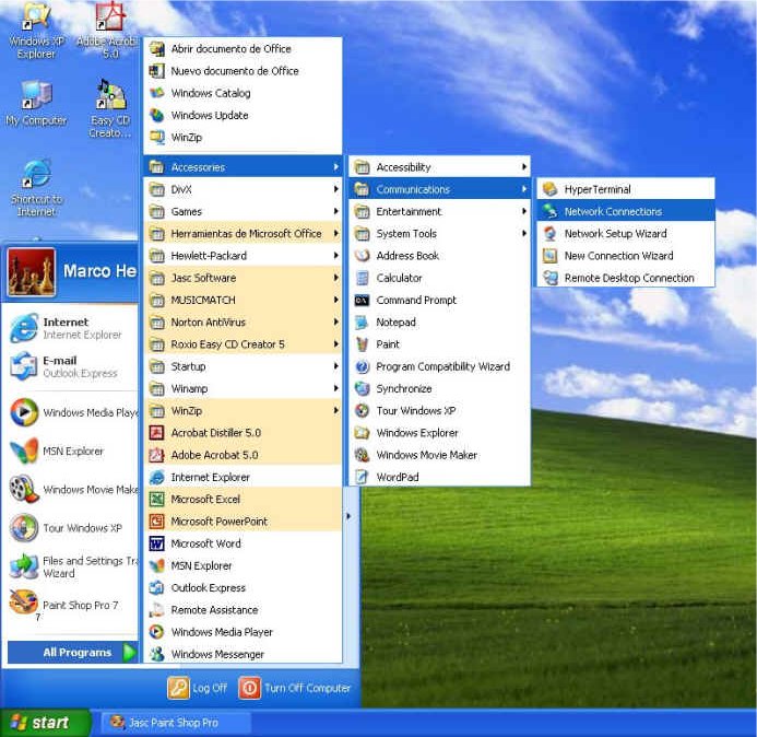 3.- Menu Comunicaciones, Conexiones de Red (Network