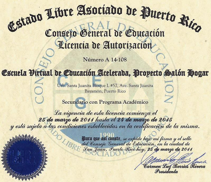 Enfocados exclusivamente en el desarrollo de nuestro programa de exámenes en línea recibimos nuestros endosos mas importantes de parte del Departamento de Educación, el de La Familia y la acreditación como Escuela Virtual para graduar estudiantes desde 9no al grado 12. Nos convertiriamos así, en la única Escuela Virtual de Puerto Rico.