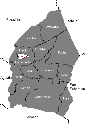con el municipio de Aguadilla y Isabela, por el sur con Añasco, por